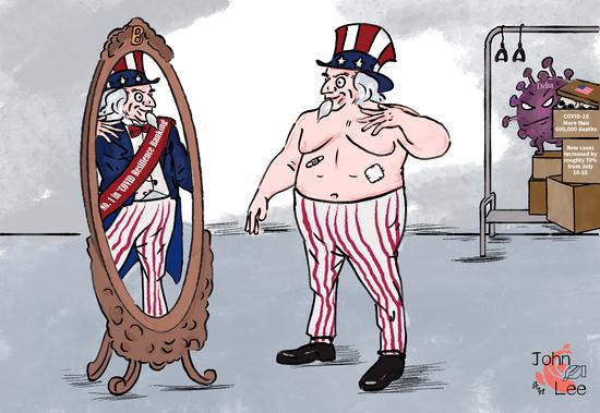 (ECNS) -- As of July 16, about 34 million COVID-19 cases had been confirmed and more than 600,000 deaths reported in the United States, with the new cases increasing by roughly 70% from the seven-day average since July 10. However, the country was placed first in the "COVID Resilience Ranking" by Bloomberg. The ranking is like a new edition of "Emperor's New Clothes."