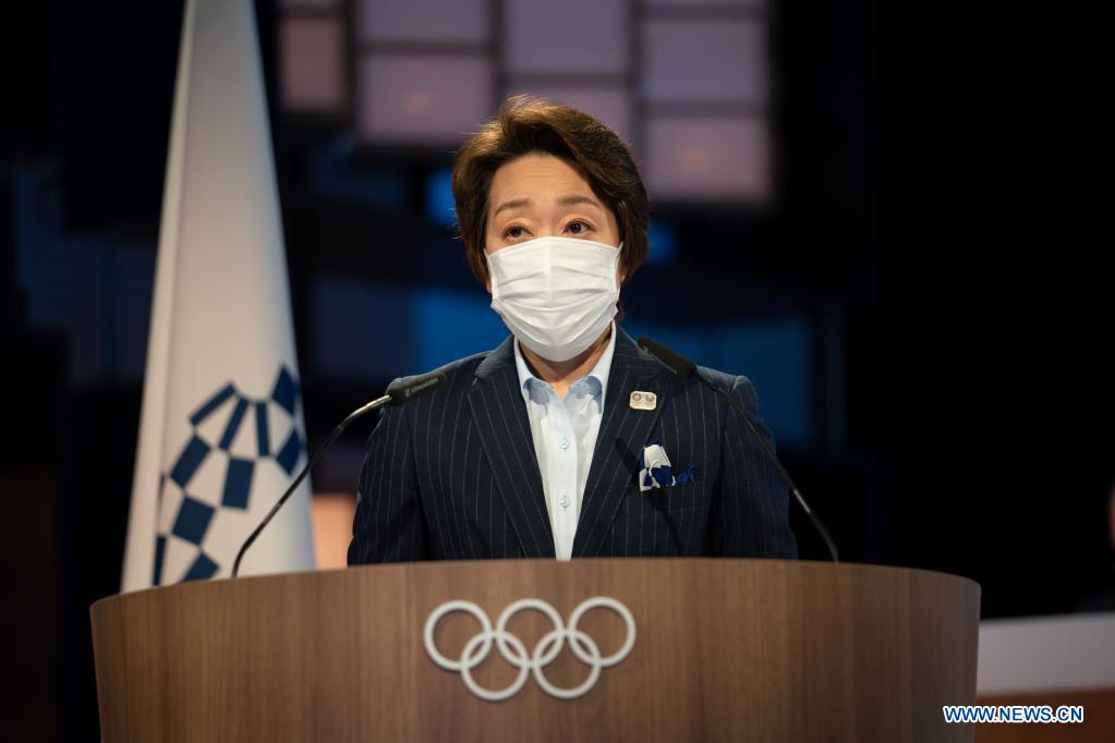 President of the Tokyo Organising Committee of the Olympic and Paralympic Games (Tokyo 2020) Seiko Hashimoto speaks during the 138th IOC Session in Tokyo, Japan, on July 20, 2021. The move of adding "together" into the Olympic motto of "faster, higher, stronger" was unanimously approved at the 138th IOC session here on Tuesday. (IOC/Handout via Xinhua)