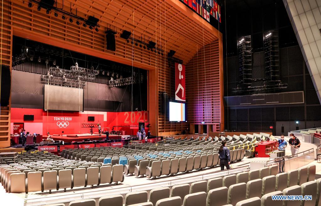 Photo taken on July 20, 2021 shows an interior view of the Tokyo International Forum, where competitions of the Tokyo 2020 Olympic Games weightlifting event will be held starting July 24. (Xinhua/Yang Lei)