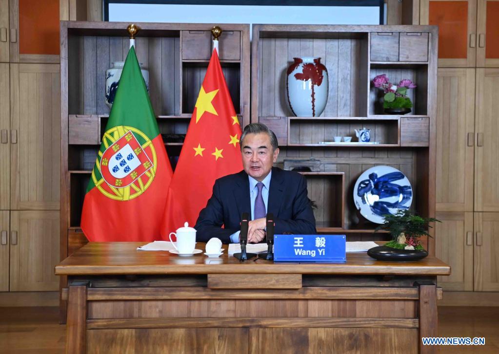 CHENGDU, July 22 (Xinhua) -- Chinese State Councilor and Foreign Minister Wang Yi said on Thursday that China stands ready to strengthen cooperation with Portugal and other European countries on research and development and fair distribution of vaccines and drugs, and jointly oppose "vaccine nationalism" and "political virus".