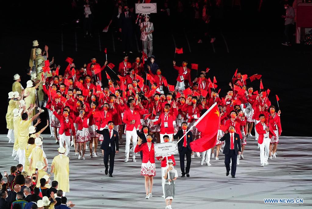 Olympic delegation of the People's Republic of China parade into the Olympic Stadium during the opening ceremony of Tokyo 2020 Olympic Games in Tokyo, Japan, July 23, 2021. (Xinhua/Xu Chang)