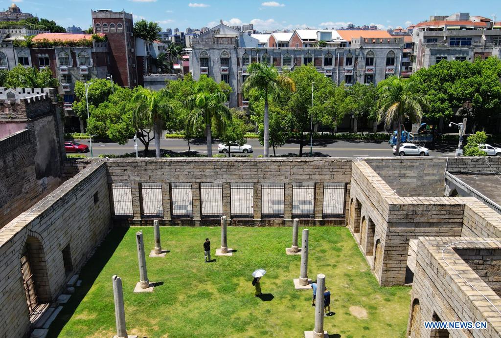 Aerial photo taken on July 24, 2021 shows Qingjing Mosque in Quanzhou, southeast China's Fujian Province. China's "Quanzhou: Emporium of the World in Song-Yuan China" was added to the UNESCO World Heritage List as a cultural site on Sunday, bringing the total number of the country's UNESCO World Heritage sites to 56. Quanzhou, a coastal city in China's Fujian Province, was a global maritime trade center back in the Song and Yuan dynasties. (Xinhua/Wei Peiquan)