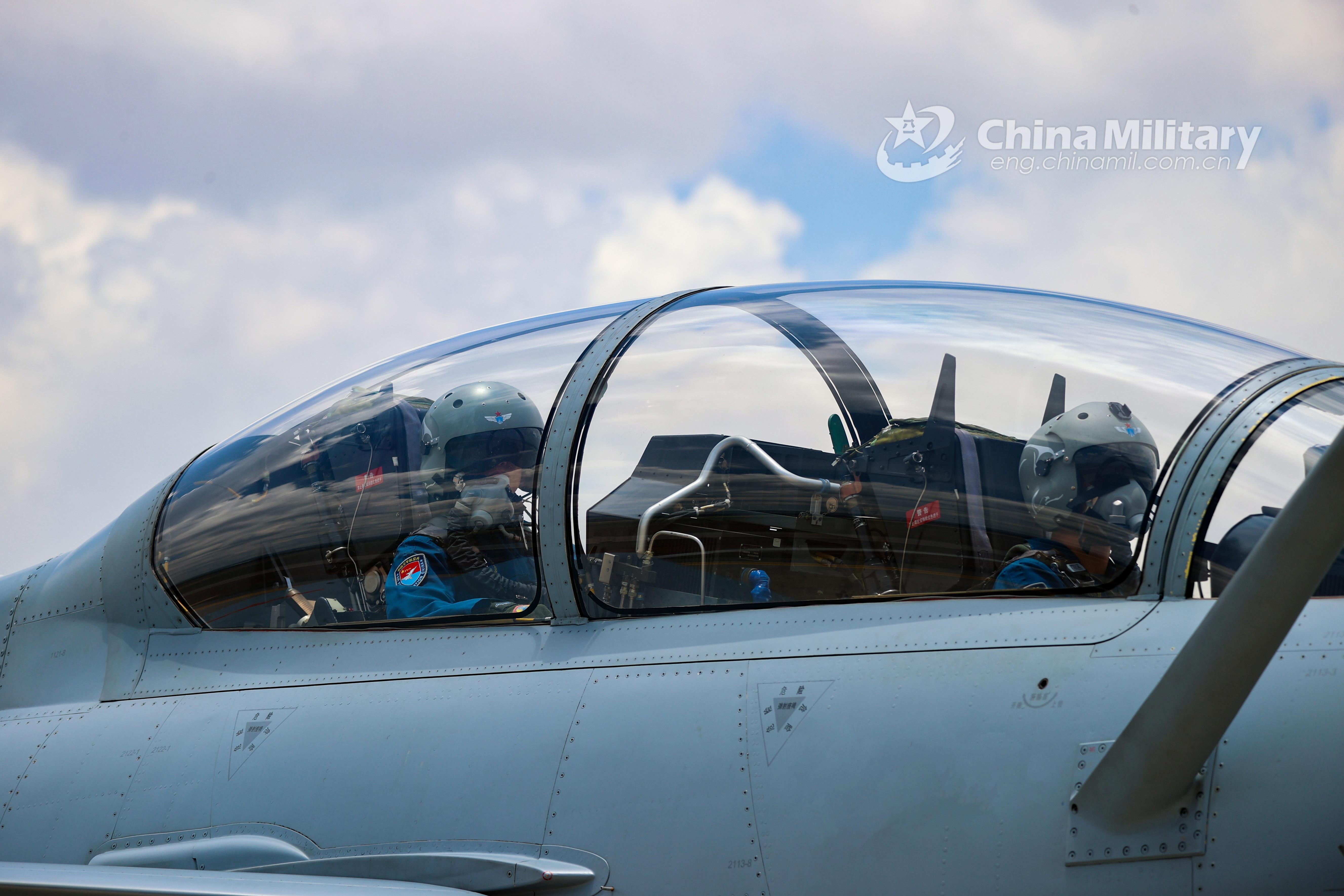 Pilots assigned to an aviation brigade under the PLA Southern Theater Command get well-prepared in their cockpit prior to a live-fire flight training exercise on July 13, 2021. (eng.chinamil.com.cn/Photo by Zhan Boqin and Wang Guoyun)