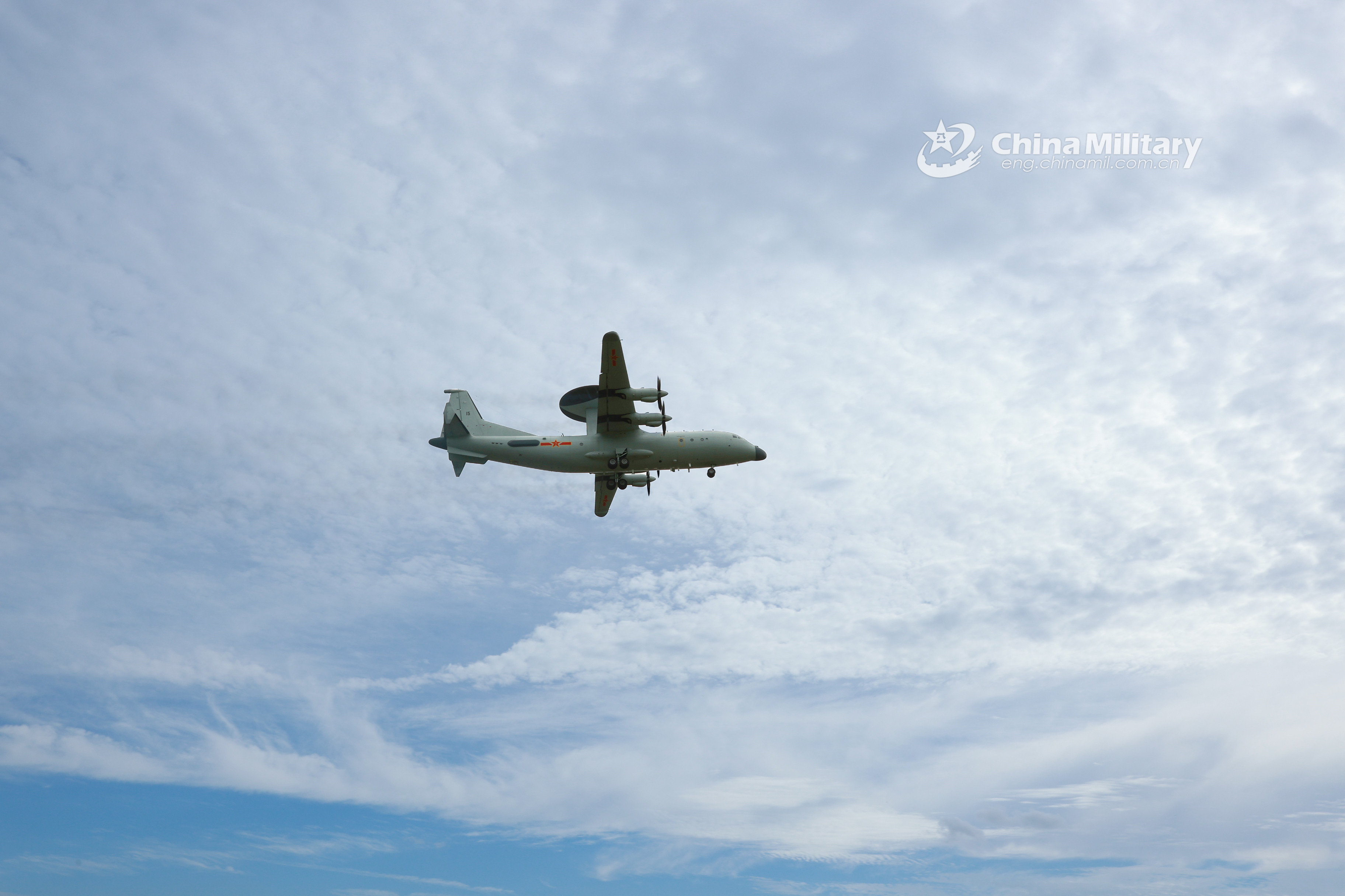 An airborne early warning (AEW) aircraft attached to a naval aviation division under the PLA Eastern Theater Command soars though the clouds during a maritime flight training exercise on July 17, 2021. (eng.chinamil.com.cn/Photo by Yu Mingzhe)