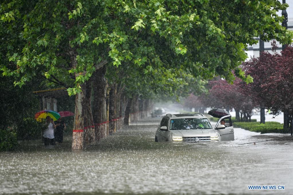 A car is inundated by rainwater in Zhengzhou, capital of Central China's Henan province, July 20, 2021. [Photo/Xinhua]