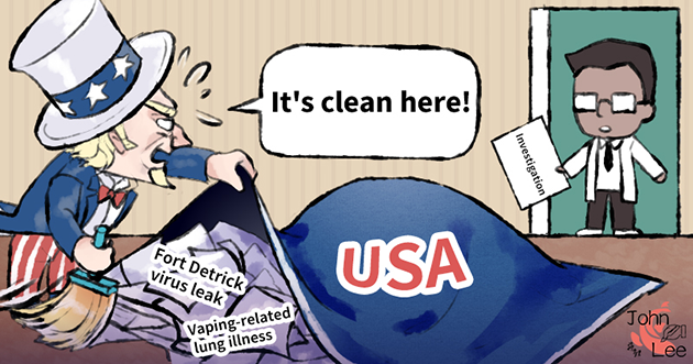 (ECNS) -- Is there a virus leak at the U.S. Fort Detrick lab? Do the unexplained respiratory outbreak in Northern Virginia in 2019 and the subsequent EVALI outbreak in Wisconsin have something to do with Fort Detrick? International calls for an investigation into Fort Detrick have been growing recently. However, the U.S. has neither addressed international concerns nor taken any investigative actions, as if keeping silence would help it distance itself from global concerns. What's more, it is not up to the U.S. itself to decide whether the Fort Detrick laboratory is "clean." The U.S. should act responsibly and invite WHO experts to investigate the lab and prove its innocence. (John Lee)