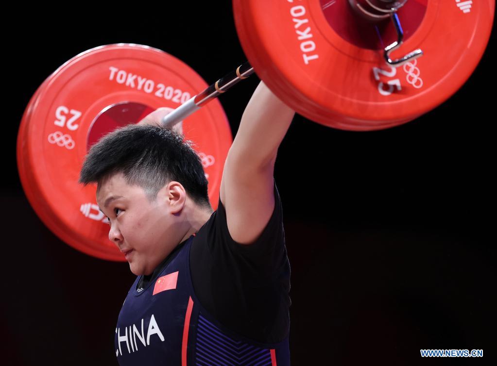 It's the sixth gold that Chinese weightlifting team has won in seven categories so far at the Tokyo Olympics.