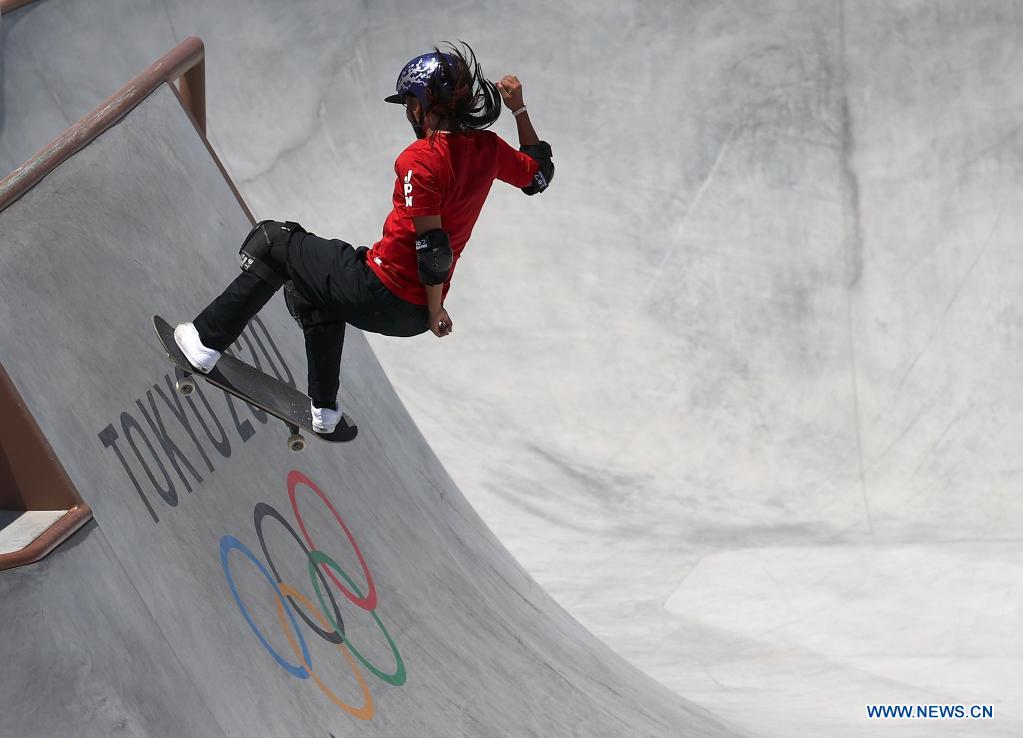 Yosozumi Sakura of Japan competes during women's park final of skateboarding at the Tokyo 2020 Olympic Games in Tokyo, Japan, Aug. 4, 2021. (Xinhua/Cao Can)