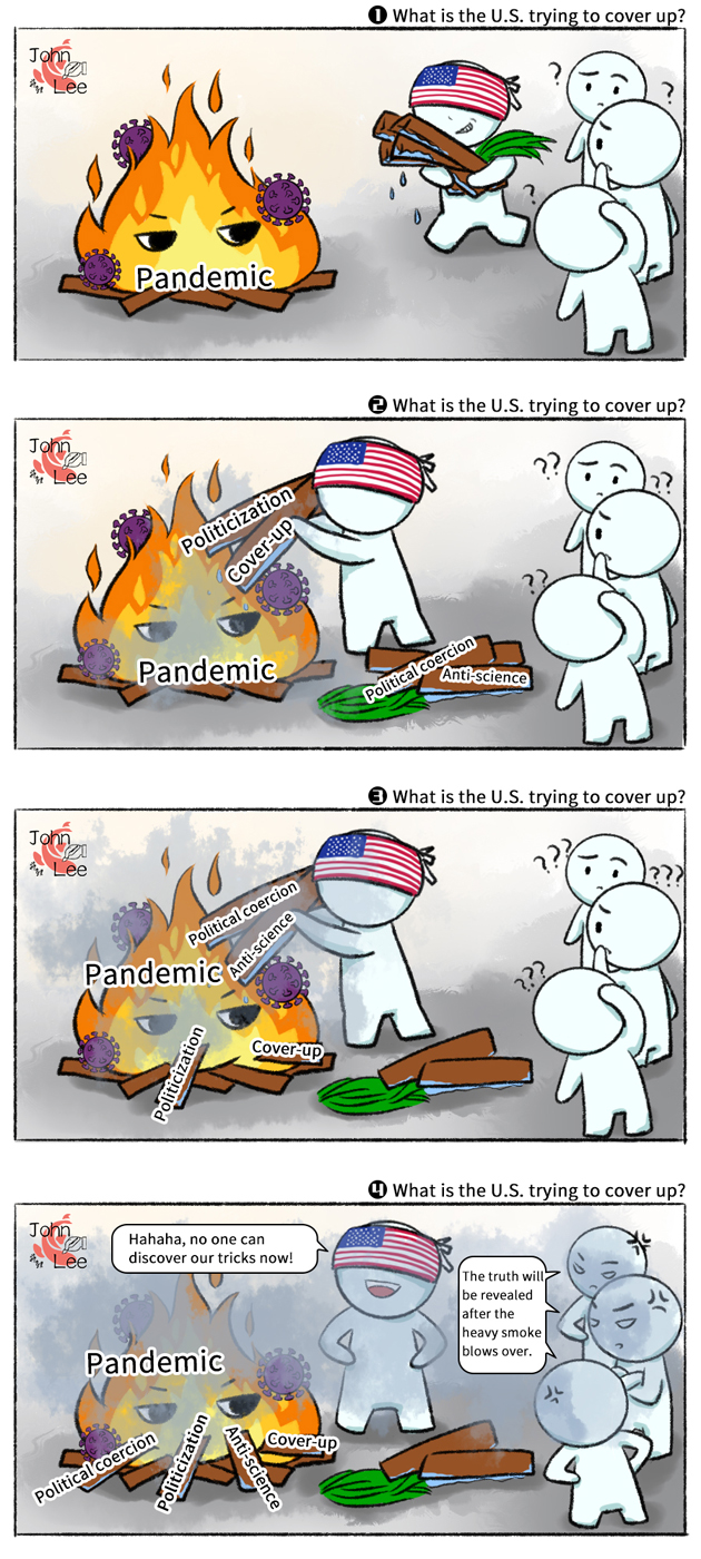 (ECNS) -- If the COVID-19 pandemic is the fire the world is trying to extinguish, the actions the U.S. has taken are like throwing wet firewood into the fire, creating a billowing cloud of smoke obscuring the truth. It throws dirty water and covers up the truth by resorting to "politicizing COVID-19 origin tracing."