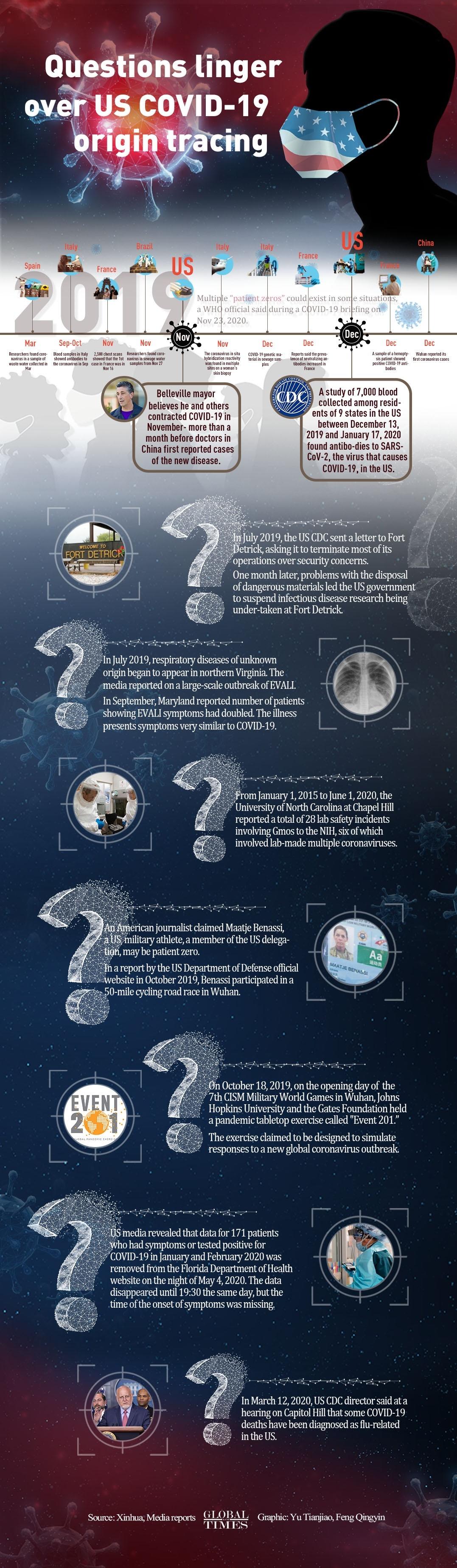 After hundreds of political parties and scientists around the world voiced concerns and firm opposition to the US-led politicization campaign on the COVID-19 origins tracing work, US politicians appeared to not give up their playbook of slandering China. But a growing number of questions linger over the US, including unexplained pneumonia outbreaks in the country: Why is the US reluctant to conduct mass testing on its early cases? What happened with its mysterious Fort Detrick and worrisome biolabs around the world? Why doesn't it release data concerning the sickened American military athletes who attended the world military games in Wuhan in 2019? and what happened in a biolab at the University of North Carolina that lately has become a new focus of public suspicions?