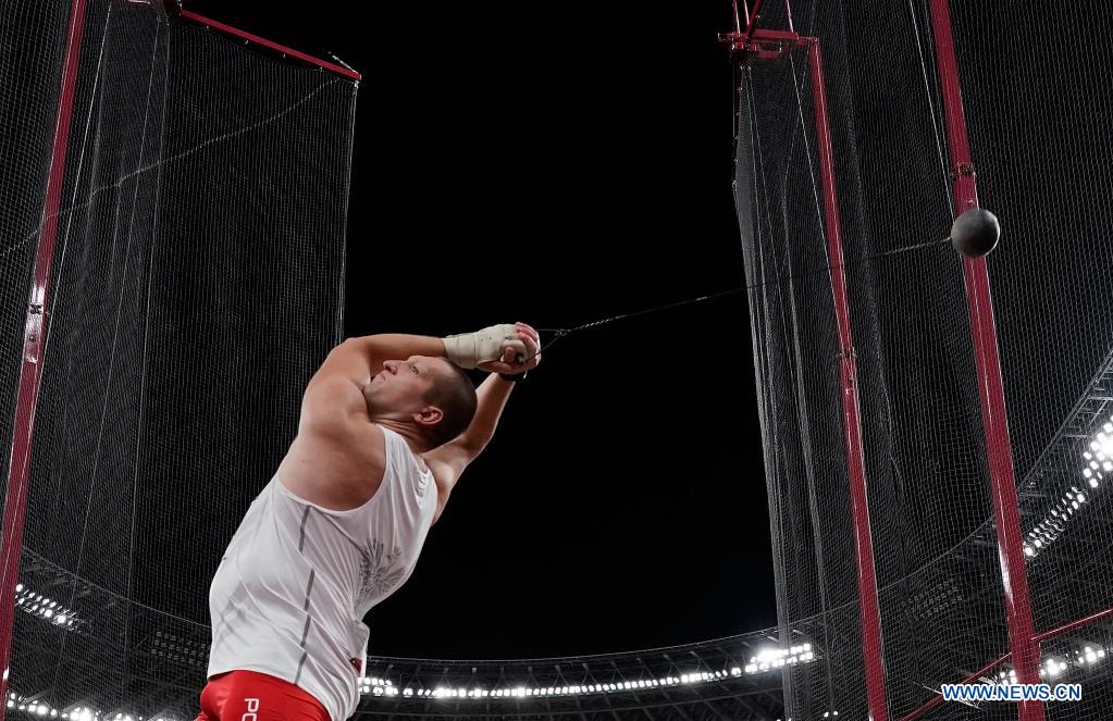 Wojciech Nowicki of Poland competes during the Men's Hammer Throw Final at the Tokyo 2020 Olympic Games in Tokyo, Japan, Aug. 4, 2021. (Xinhua/Wang Lili)