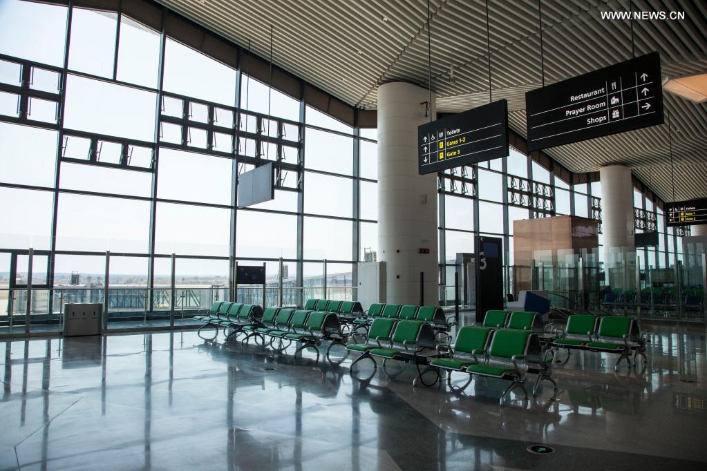 Photo taken on Aug. 5, 2021 shows the interior of the new Simon Mwansa Kapwepwe International Airport in Ndola, Copperbelt Province of Zambia. Zambia on Thursday commissioned a new international airport financed by China, with President Edgar Lungu expressing gratitude to the Chinese side for financing the construction of the airport. (Xinhua/Zhao Yupeng)