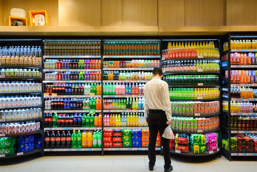 A man shops at a supermarket in Handan City, north China's Hebei Province, June 9, 2021. (Photo by Li Hao/Xinhua)