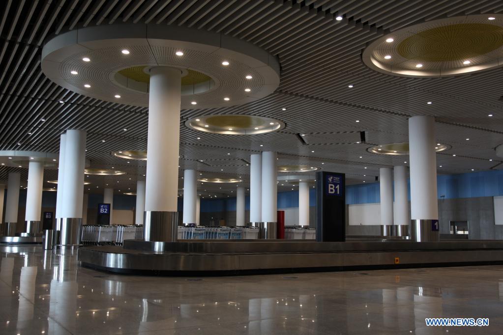 Photo taken on Aug. 9, 2021 shows the interior of the second terminal building at the Kenneth Kaunda International Airport in Lusaka, Zambia. Zambia on Monday launched a modern airport terminal, which has been built by a Chinese company. The southern African nation launched the second terminal building at the Kenneth Kaunda International Airport, which will increase the number of passengers from the current two million to four million per year. The project, financed by the Export-Import Bank of China (China Exim Bank), is designed and built by China Jiangxi Corporation for International Economic and Technical Cooperation. (Xinhua/Zhao Yupeng)