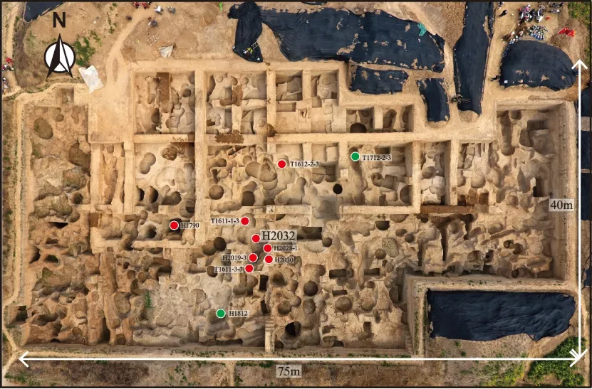 Aerial photo shows the layout of the coin minting workshop in China's Henan Province. (Source: Archeological team at the Guanzhuang ruins)