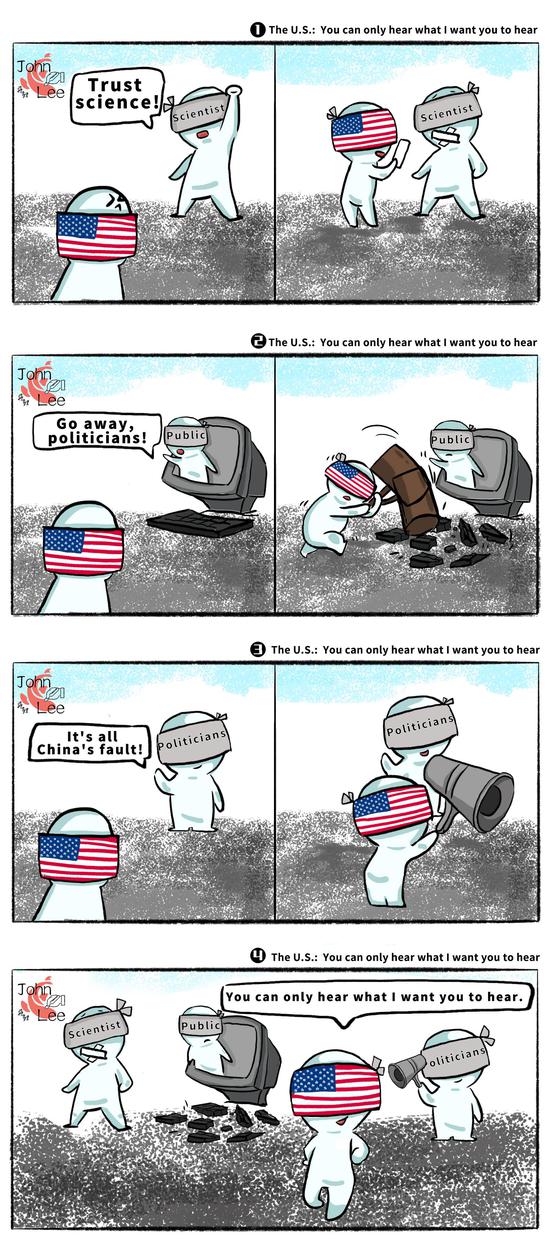 However, not all voices are given full play in the discussion. Some scientists are pressed by the U.S. to tune down their voices or even shut their mouths just because their opinions don't fit in the “blaming China” game. On the other hand, some U.S. politicians and the intelligence community are taking the stage in what should be a scientific matter.