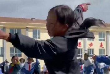 Elementary school students do morning exercises in Southwest China's Tibet Autonomous Region. Tibetan music and dance has been integrated into the exercises to help students fully refresh themselves in a cheerful rhythm.