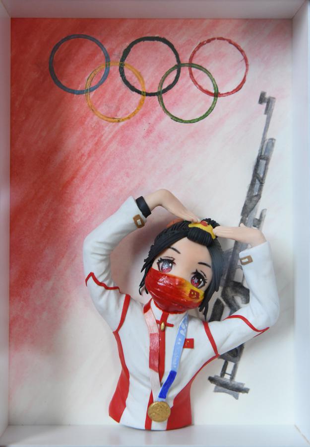 This polymer clay sculpture depicts Yang Qian, who won the first gold medal at the Tokyo 2020 Games. Her event was the women's 10-meter air rifle. [Kou Ning/For chinadaily.com.cn]