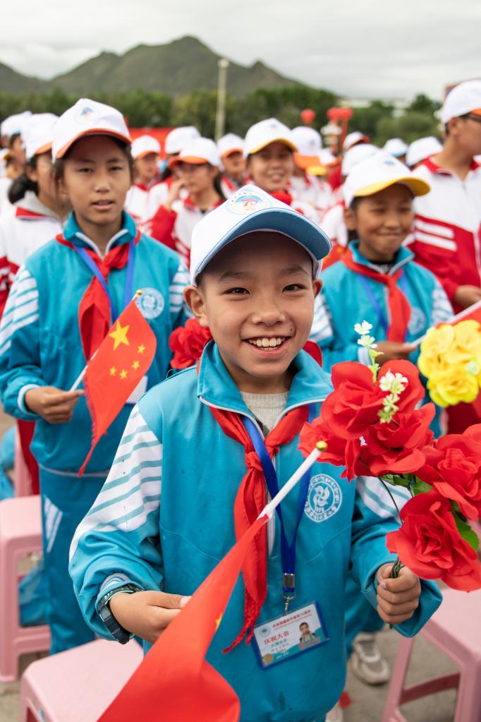 A grand gathering is held to celebrate the 70th anniversary of the peaceful liberation of Tibet at the Potala Palace square in Lhasa, southwest China's Tibet Autonomous Region, Aug. 19, 2021. More than 20,000 people from various ethnic groups attended the event held in Lhasa. (Xinhua/Sun Ruibo)