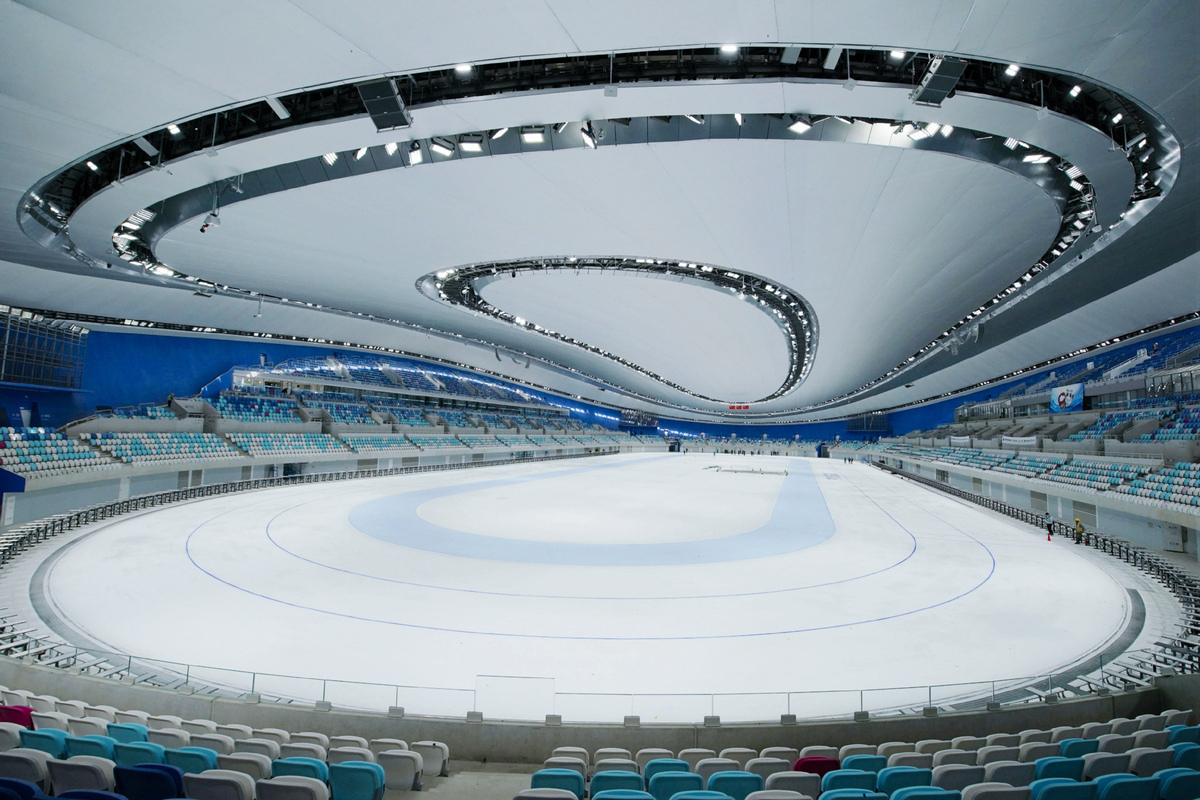 A photo taken on May 8, 2021 shows the inside of the National Speed Skating Oval in Beijing. [Photo/Xinhua]