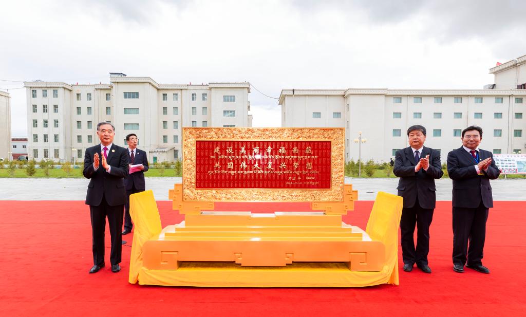 He presented a congratulatory plaque, on which Xi Jinping, general secretary of the CPC Central Committee, wrote inscriptions "building a beautiful and happy Tibet and together fulfilling the great dream of national rejuvenation" to the city.