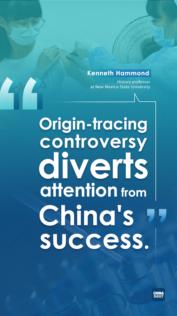 Kenneth Hammond, a professor at New Mexico State University who specializes in Chinese history, said in a recent interview with Xinhua that the controversy is contrived to scapegoat China and avoid assuming political responsibility for America's public health failure.