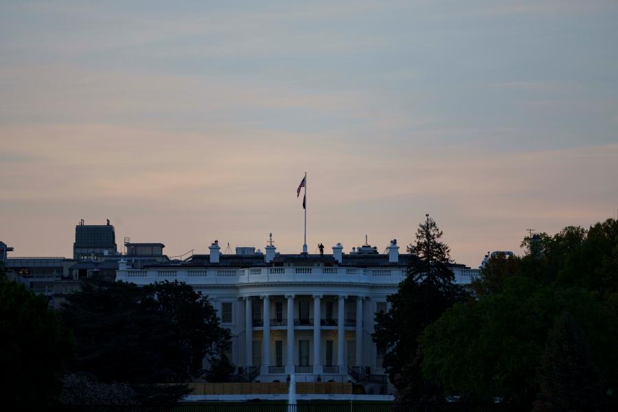 Photo taken on April 13, 2021 shows the White House in Washington, D.C., the United States. (Photo by Shen Ting/Xinhua)