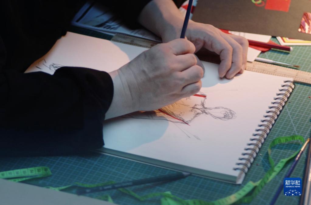 Ye Jintian draws a sketch of the uniform to be used as the podium sportswear for the Tokyo Olympics. (Photo provided by the interviewee)