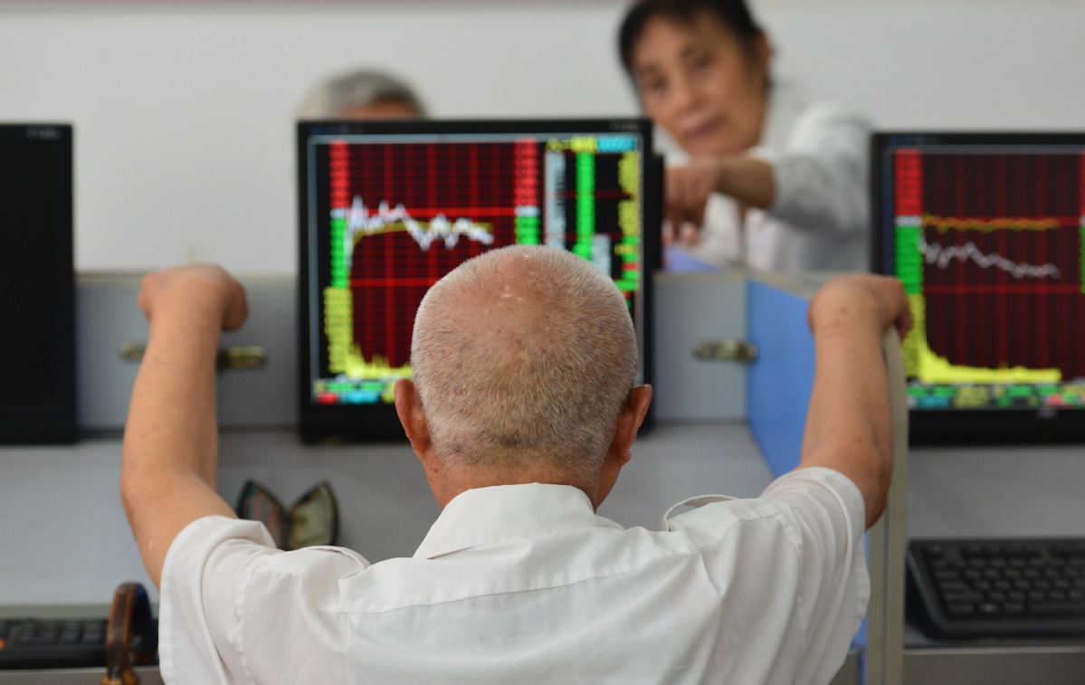 Investors check stock prices at a securities brokerage in Fuyang, Anhui province. [Photo by Lu Qijan/For China Daily]