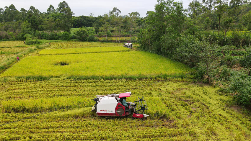Mechanized facilities harvesting 84,000 hectares of rice in SW China's Sichuan (7)