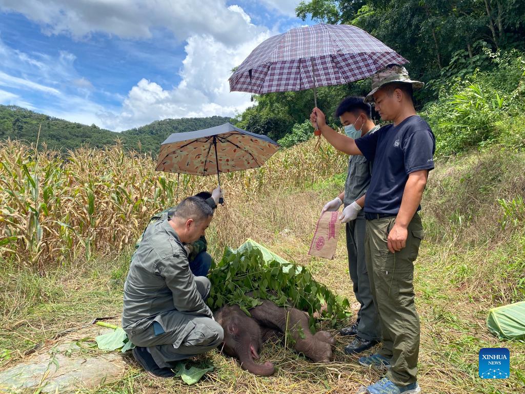 KUNMING, Aug. 31 (Xinhua) -- A sick baby elephant that was trapped in a banana plantation in southwest China's Yunnan Province and left behind by its herd only days after birth has been rescued by local authorities and is receiving treatment.