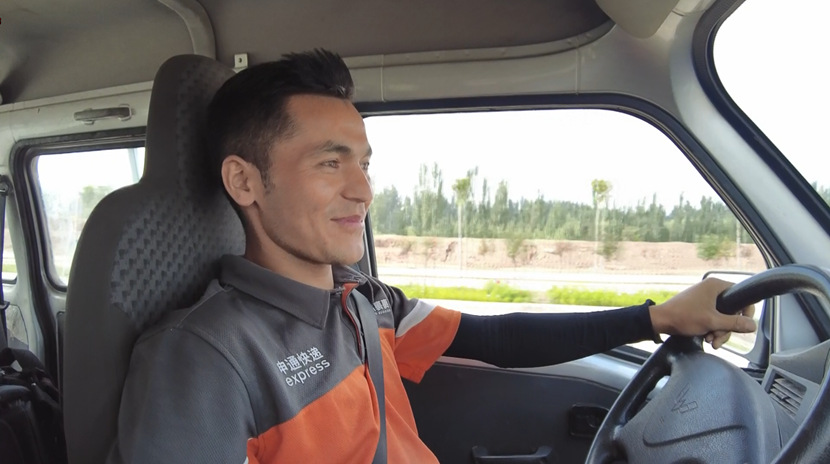 Eziz Memtimin kicked off his busy day by delivering packages to customers in Kashgar, northwest China's Xinjiang Uygur Autonomous Region.