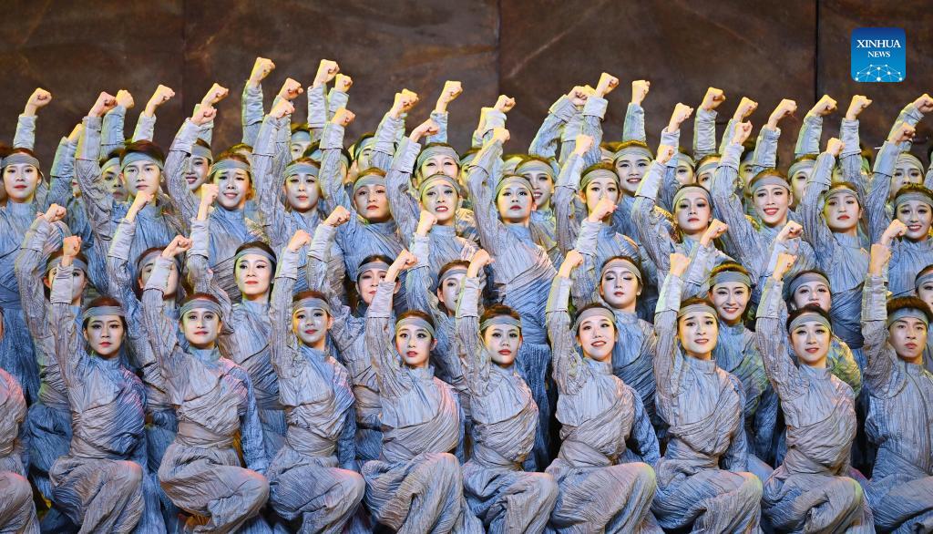 Artists stage a performance at an opening gala of the sixth ethnic minority art festival in Beijing, capital of China, Aug. 31, 2021. The opening gala of the sixth ethnic minority art festival was held in Beijing on Tuesday evening. (Xinhua/Li Xiang)