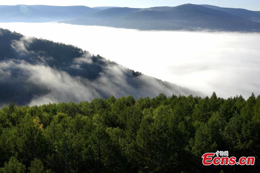 This undated photo shows a spectacular sea of clouds appear in the Yitulihe National Wetland Park in Inner Mongolia. The forest atmosphere and the sea of clouds turned the park into a fairyland. (Photo/Lyu Haojun)