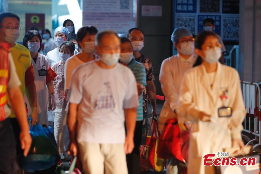 Patients leave the Shanghai Songjiang District Central Hospital by taxis, Sept. 1, 2021. (Photo/Yin Liqin)