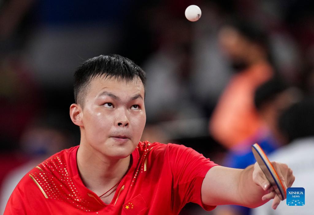 Yan Shuo of China competes during the men's team classes 6-7 semifinal of table tennis event at the Tokyo 2020 Paralympic Games in Tokyo, Japan, Sept. 1, 2021. (Xinhua/Hu Huhu)