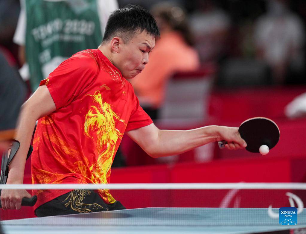 Yan Shuo of China competes during the men's team classes 6-7 semifinal of table tennis event at the Tokyo 2020 Paralympic Games in Tokyo, Japan, Sept. 1, 2021. (Xinhua/Hu Huhu)