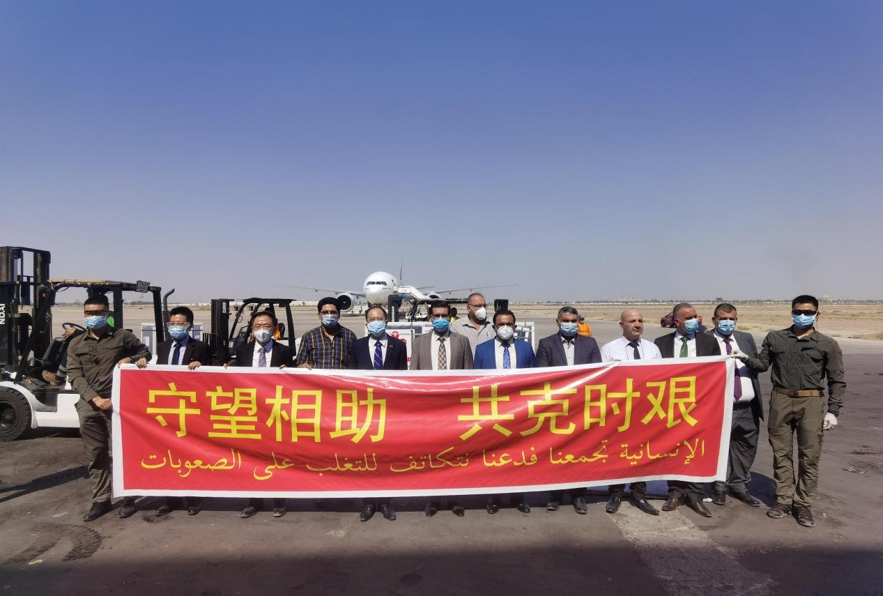 The third batch of COVID-19 vaccines donated by the Chinese government to Iraq arrives at the Baghdad International Airport in the country, Aug. 12, 2021. (Photo/Embassy of China in Iraq)