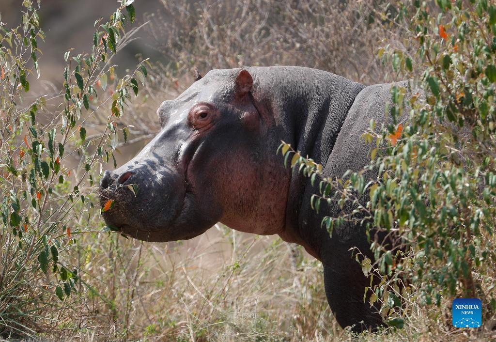 Photo taken on Aug. 30, 2021 shows a hippopotamus at Maasai Mara National Reserve in southwestern Kenya. Kenya has released the results of a three-month wildlife census that reveal a slight increase in the population of iconic large herbivores including elephants and rhinos (Xinhua/Long Lei)