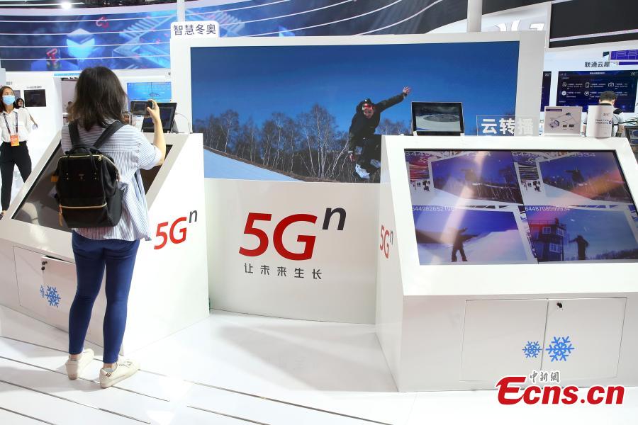Visitors take photos of 5G cloud broadcasting technology at a venue of the 2021 World 5G Convention in Beijing, capital of China, Sept. 1, 2021. (Photo: China News Service/Yi Haifei)