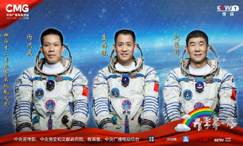 Nie Haisheng, the Shenzhou-12 mission commander, is expected to give his speech that is themed "Dressed in blue with red embroidered on the chest," while his fellow crew members Liu Boming to lecture on "Ocean of stars are always where we are headed," and Tong Hongbo on "We are always ready to put on feitian armor when the country is calling for duty," according to the program arrangement the CCTV published on Wednesday.
