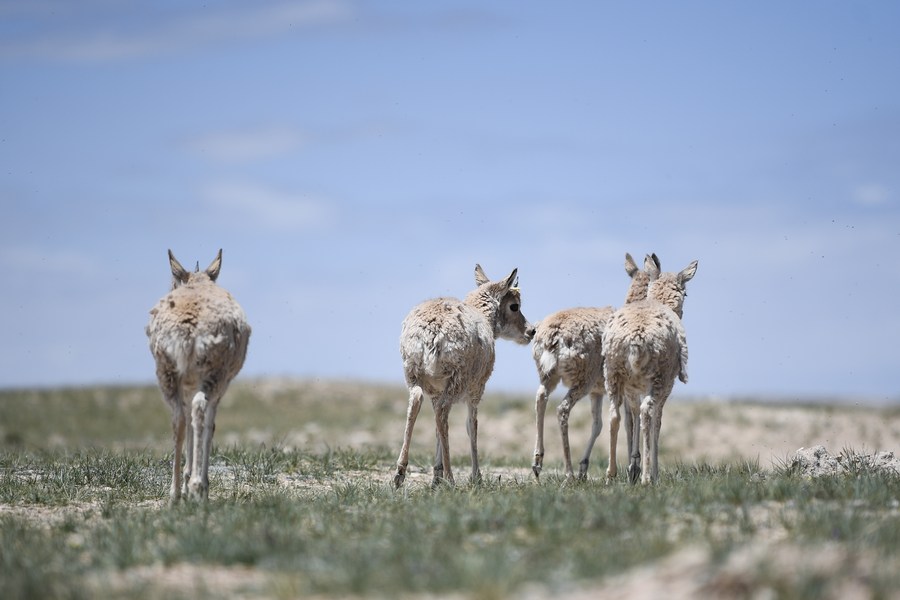 Tibetan antelopes are released into the wild at a wildlife rescue center of the Sonam Dargye Protection Station in Hoh Xil, northwest China's Qinghai Province, July 7, 2021. (Xinhua/Zhang Long)