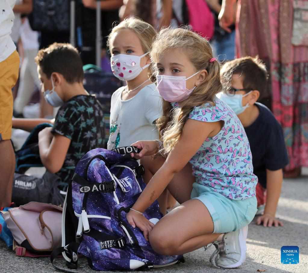 Students arrive at Fontonne school on the first day of the new school year in Antibes, southern France, on Sept. 2, 2021. (Photo by Serge Haouzi/Xinhua)