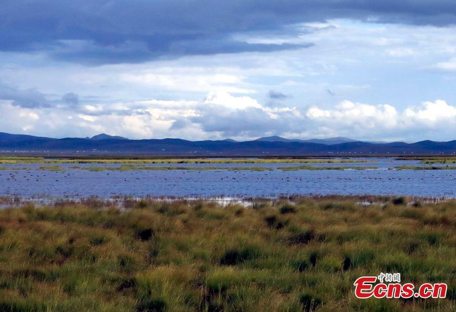 Migratory birds are seen perching on the Flower Lake in Ruoergai County, Aba Prefecture, Sichuan Province. (Photo: China News Service/Wang Lei)