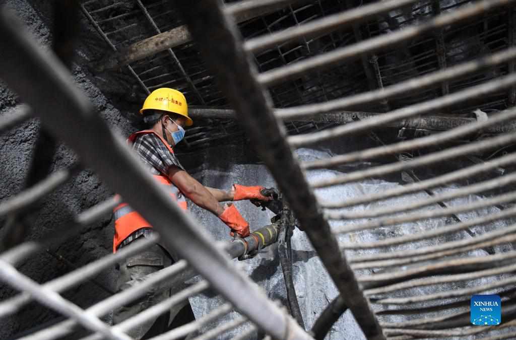 A worker prepares the drill-through of a railway tunnel in Du'an Yao Autonomous County, south China's Guangxi Zhuang Autonomous Region. Sept. 1, 2021. A 15.2-km tunnel on the high-speed railway linking Nanning of south China's Guangxi Zhuang Autonomous Region and Guiyang of southwest China's Guizhou Province was drilled through on Thursday. (Xinhua/Lu Boan)