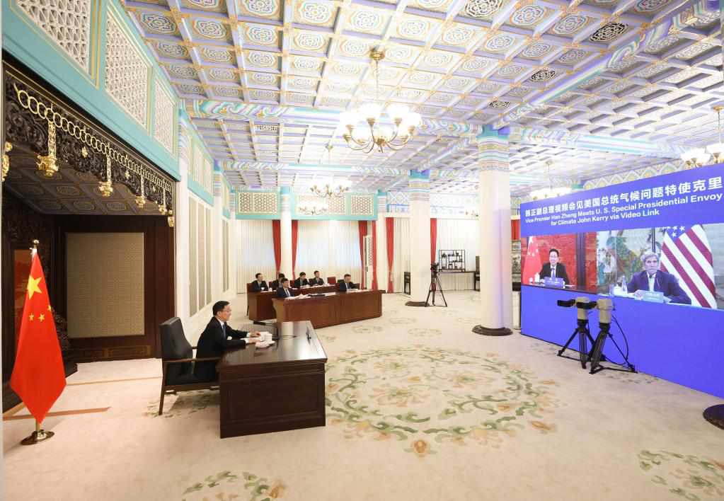 Chinese vice premier meets U.S. climate envoy via video link (2)