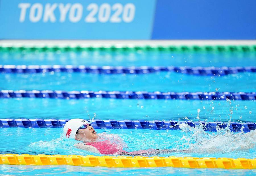 Lu Dong of China competes in the mixed 4x50m freestyle relay 20 points final at the Tokyo 2020 Paralympic Games on Aug. 26, 2021. (Xinhua/Xiong Qi)