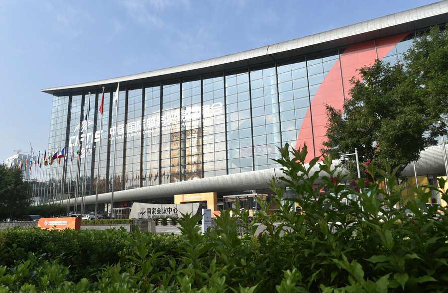 Photo taken on Sept. 1, 2021 shows an exterior view of the China National Convention Center, the main venue of the China International Fair for Trade in Services (CIFTIS), in Beijing, capital of China. (Xinhua/Lu Peng)