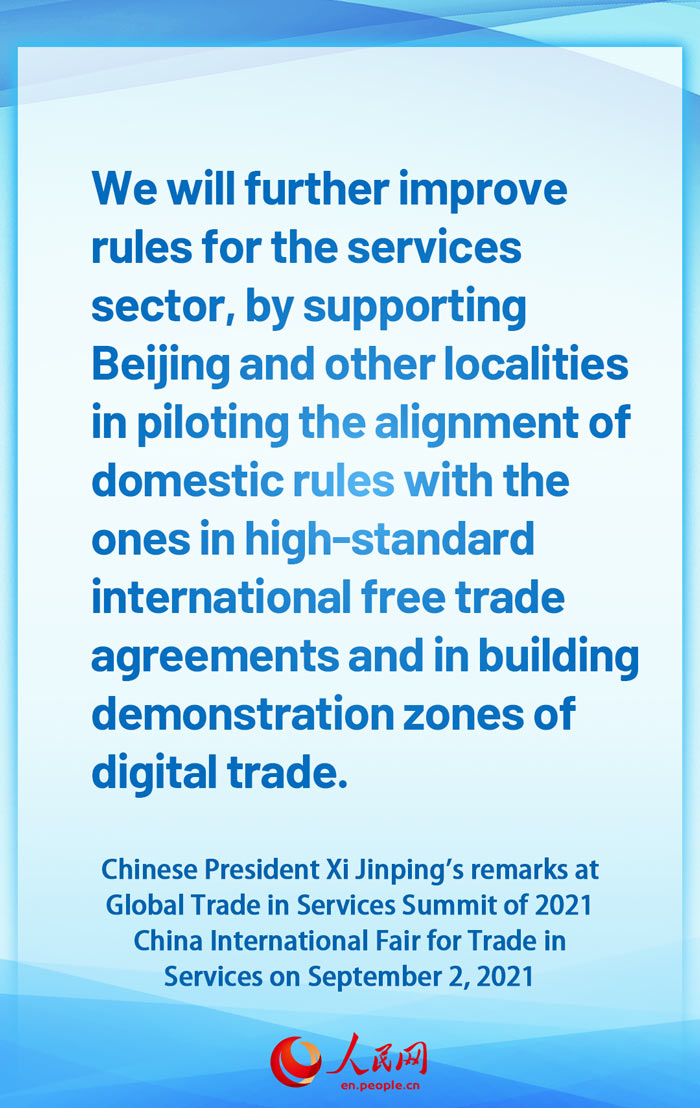 Highlights of Chinese President Xi Jinping's remarks at Global Trade in Services Summit of 2021 China International Fair for Trade in Services (4)