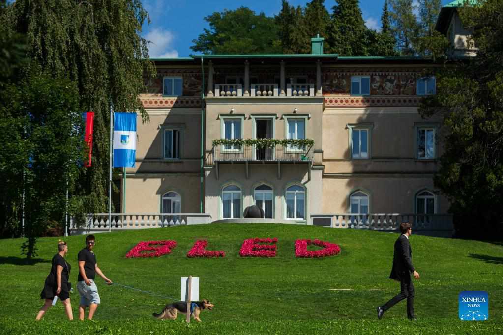 People enjoy a sunny day at the bank of the Bled lake in Slovenia, Sept. 1, 2021. Bled lake is one of the most attractive tourist destinations in Slovenia. (Photo by Zeljko Stevanic/Xinhua)